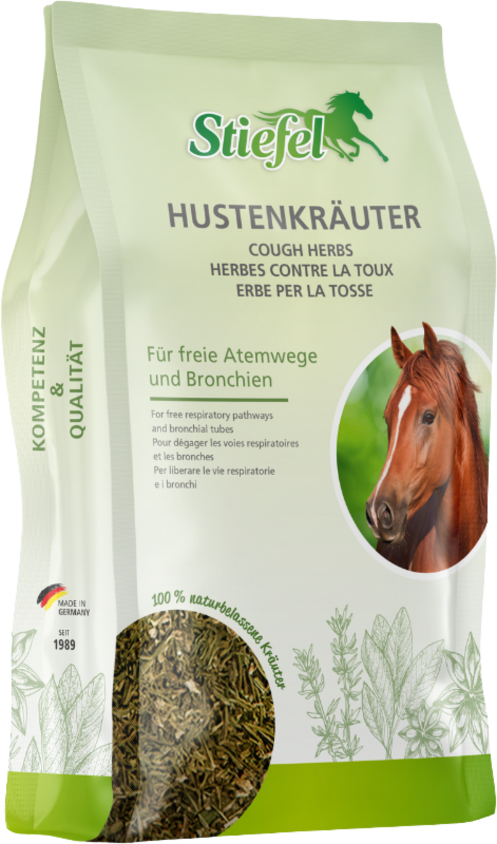 Stiefel Cough Herbs are a specially selected, natural herbal blend that supports the respiratory tract and bronchial tubes in case of respiratory stress caused by the environment or feeding. The herbs can have a positive effect on the respiratory system. Also suitable for long-term use.