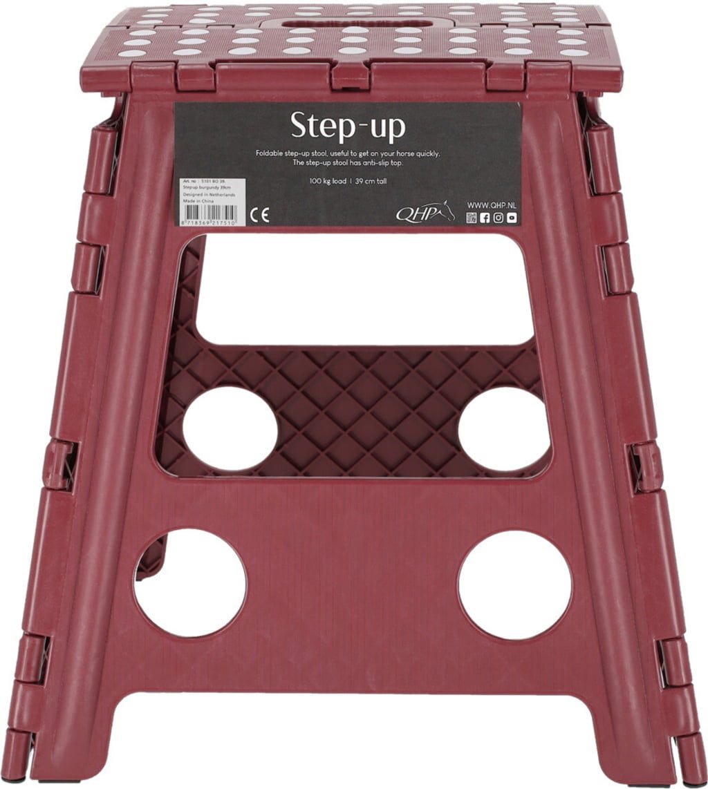 Le tabouret Step-Up de QHP est un accessoire pratique à l’écurie, en concours. Que ce soit pour monter à cheval ou tresser la crinière, ce tabouret pliant vous offre la hauteur idéale et une grande stabilité. Sa conception compacte permet de le plier facilement et de l’emporter partout.