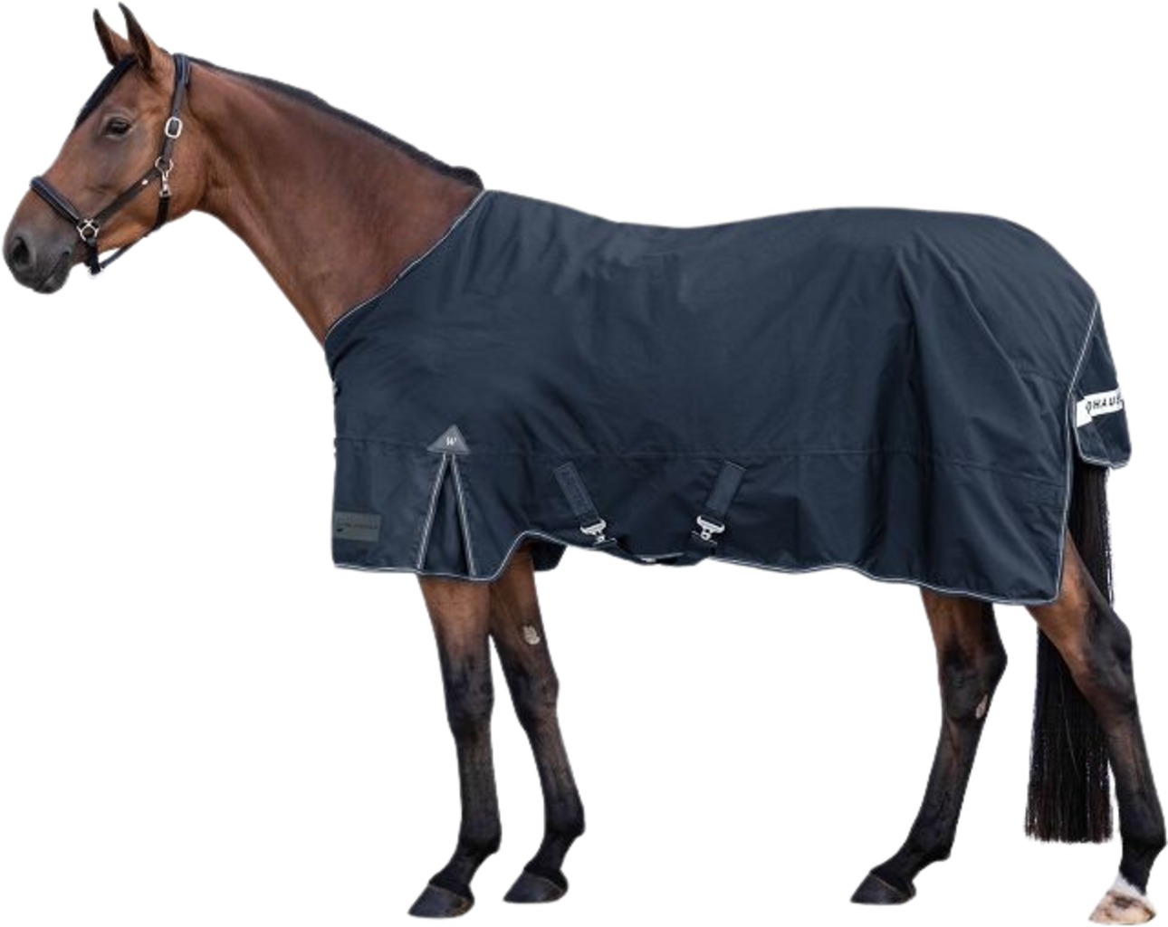 Pour une liberté de mouvement maximale, que ce soit lors du roulage ou de l’alimentation, la couverture dispose de généreux plis d’aisance. La tenue est toujours sûre grâce aux doubles fermetures frontales en T avec rabat velcro et aux solides sursangles croisées, qui empêchent tout glissement. Particulièrement utiles au crépuscule, les détails réfléchissants sur le biais et le rabat de queue améliorent la visibilité.