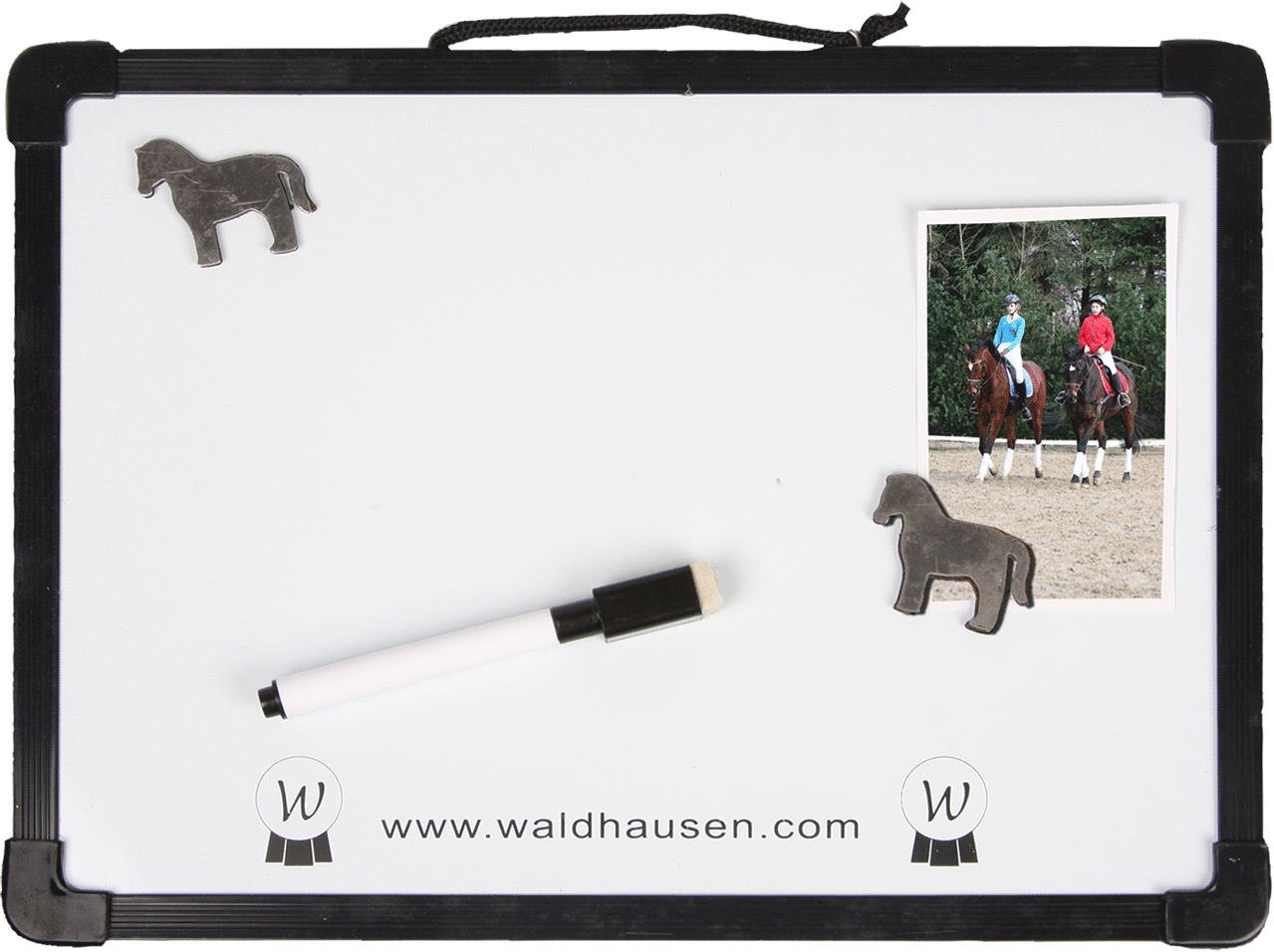 Vous cherchez la solution idéale pour afficher vos plannings d’écurie, messages ou objectifs d’entraînement de façon claire et ordonnée ? Ce tableau d’écriture magnétique pratique de Waldhausen est votre nouvel allié d’organisation dans le box ou la sellerie !