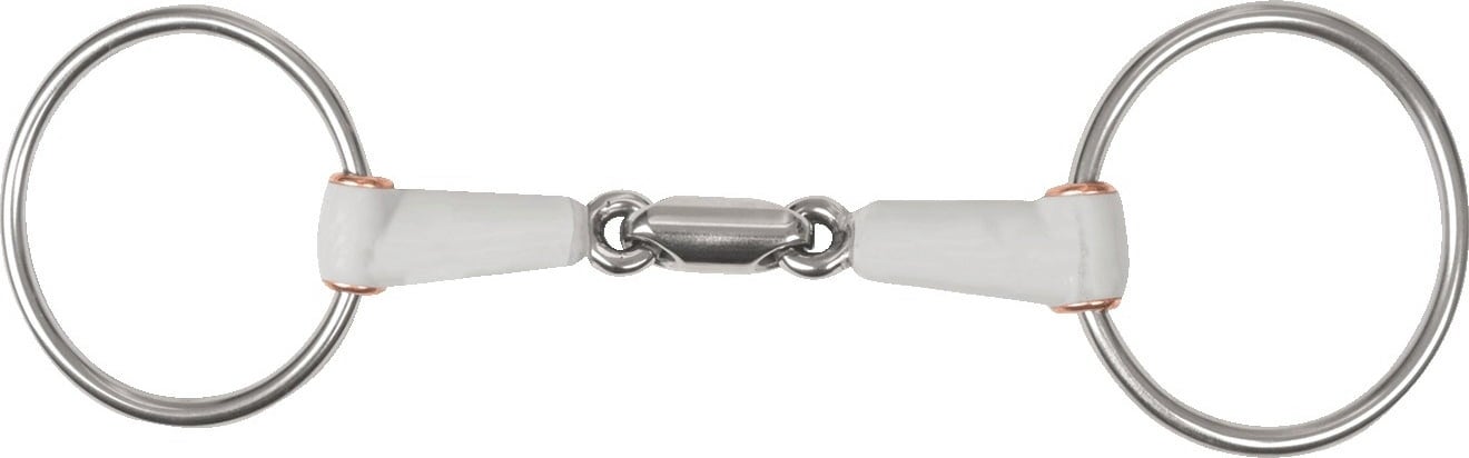 Si possono trasmettere segnali particolarmente delicati con questo filetto ad anelli liberi doppio snodato, che grazie alla sua struttura slanciata si adatta in modo ottimale all'anatomia del cavallo. Le ampie superfici di appoggio distribuiscono la pressione in modo uniforme su lingua e barre, aumentando sensibilmente il comfort. L’integrazione di bussole in rame assicura inoltre uno scorrimento silenzioso e stabile degli anelli. Poiché il cannone è realizzato in plastica estremamente liscia e idonea al contatto alimentare, la produzione di saliva viene delicatamente stimolata, mentre le commessure labiali restano protette dallo sfregamento.