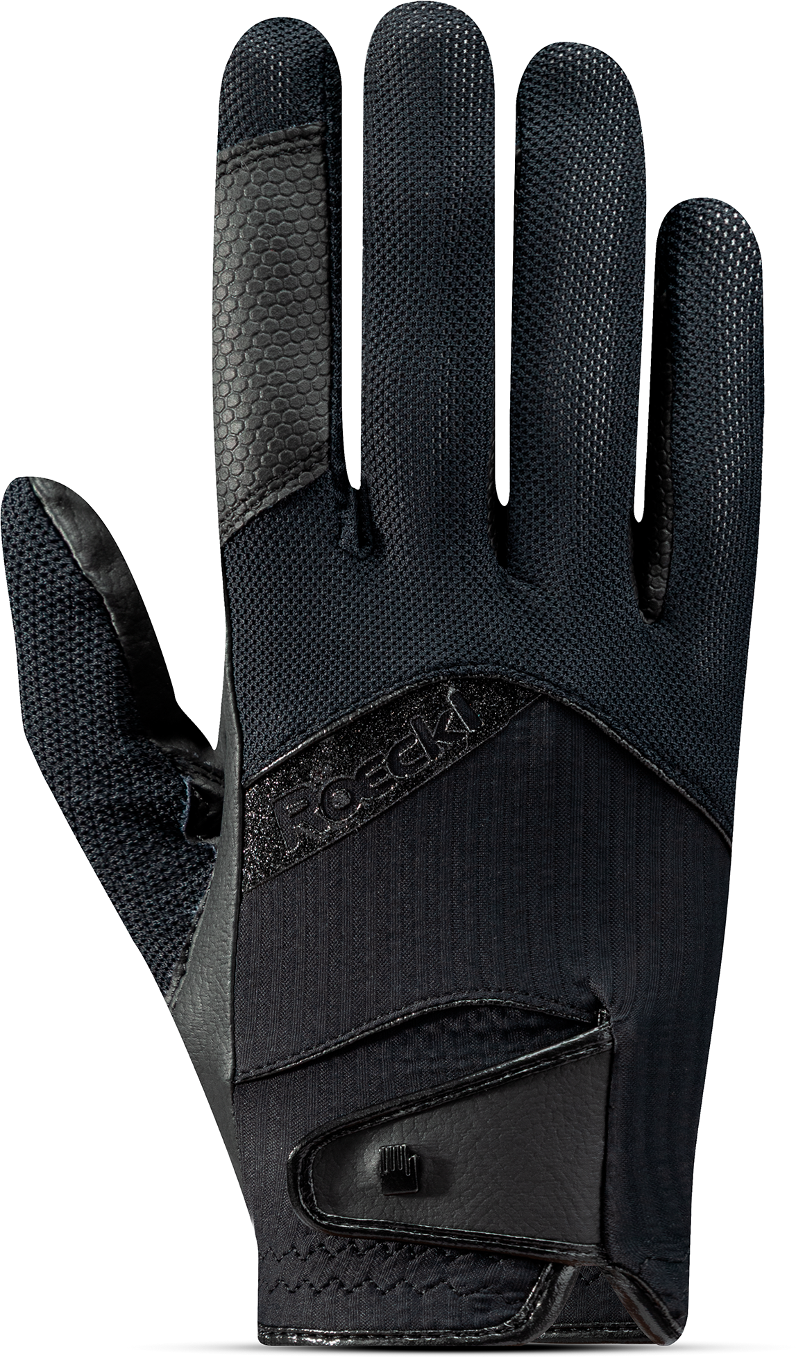 Con i guanti da equitazione MILLERO di Roeckl Sports il look sportivo è assicurato. Questo modello colpisce per i dettagli di design sportivo, ma non è affatto carente in termini di funzionalità. Il dorso realizzato con una combinazione di WaffleFlex e microrete traspirante e leggera garantisce un comfort eccellente con la massima circolazione dell'aria in estate. Per il bene dell'ambiente, il guanto da equitazione MILLERO è realizzato in poliammide riciclata ed elastan riciclato. Con filato resistente ECONYL®, ricavato da reti da pesca riutilizzate. Il sistema Sense-Grip garantisce una presa ottimale sulle redini. La vestibilità è massimizzata dal COMFORT-CUT tipico di Roeckl. Naturalmente, questo modello è compatibile con il touchscreen. La vestibilità può essere adattata grazie all'attacco sul polsino.