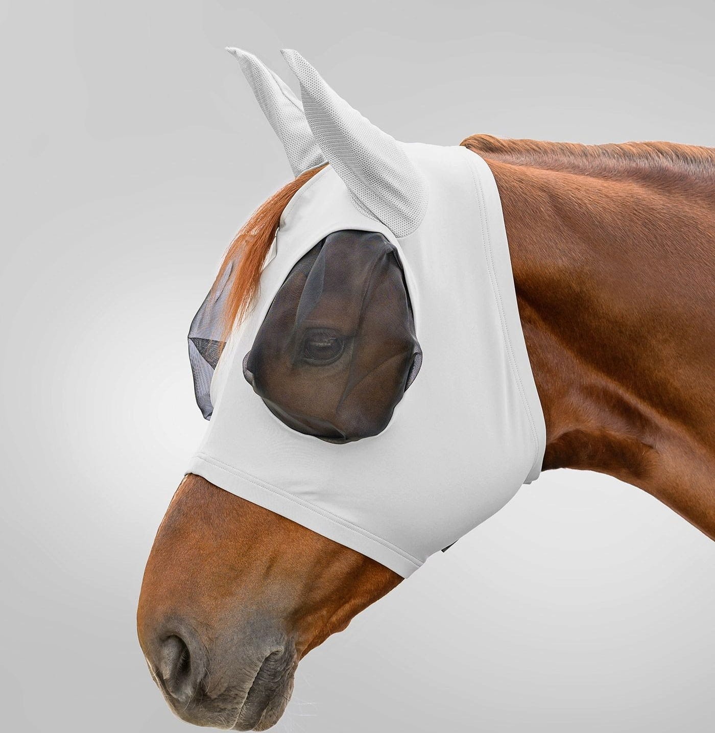 La maschera è rifinita con bordi morbidi per prevenire sfregamenti nelle zone sensibili. Grazie alle protezioni per le orecchie integrate in mesh traspirante, la ventilazione rimane ottimale anche nelle giornate più calde, impedendo l'ingresso dei simulidi. L'ampia chiusura a strappo elastica permette di applicare la maschera rapidamente e assicura che rimanga salda e confortevole sulla testa del cavallo anche durante il gioco. Un accessorio ideale per chiunque dia importanza alla flessibilità e al massimo comfort.
